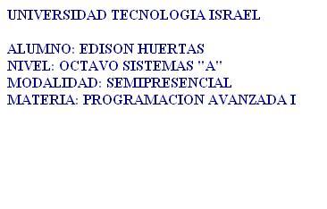 Alumno: Edison Huertas Nivel: Octavo de Sistemas Semipresencial Universidad Israel.