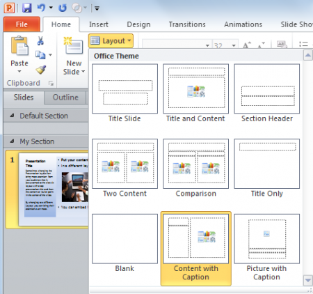 haga clic en la flecha ( ) del botón New Slide.