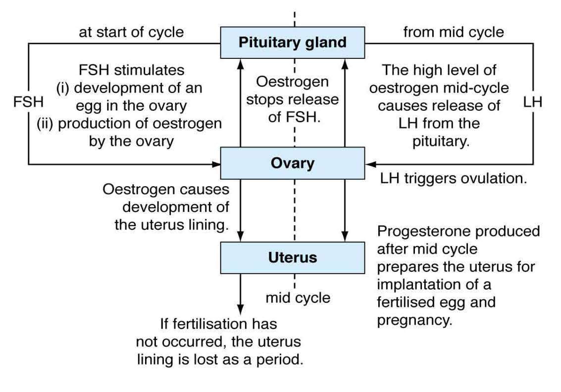 hormones are secreted by the pituitary gland and the ovaries regulate the monthly release of an egg from the ovaries