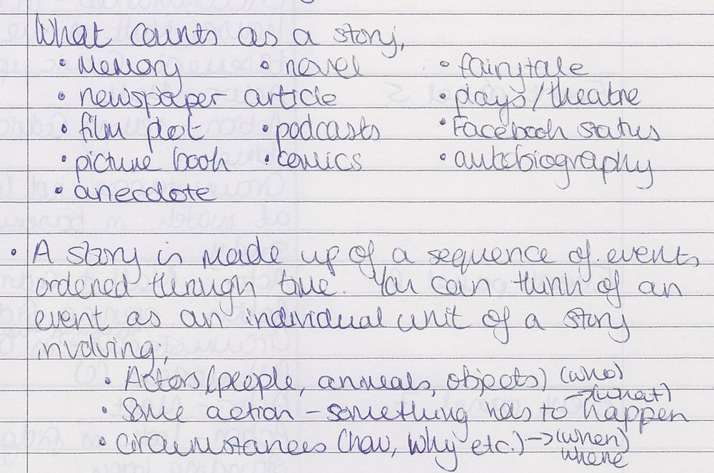 Stories are normally only worth telling if they involve some sort of complication or something out of the ordinary happening.Why do we tell stories? to entertain in response to a situation; e.g. relevant conversation to instil morals; warning/teaching others to inform; as a way of remembering to persuade; presenting political points of view e.g. The Handmaid's Tale