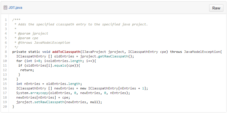 Código para adicionar um classpath entry para o Eclipse classpath.