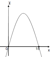 03 - Uma bola colocada no chão é chutada para o alto, percorre uma trajetória descrita por , y = - 2x² + 12x onde y é a altura e x é o alcance, em metros, está representada no gráfico ao lado.