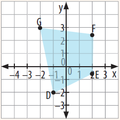 Los vértices del polígono DEFG mostrado son: D(-1; -2) E ( 2; 0) F ( 2; 2,5) G(-2; 3)