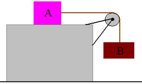 Na figura abaixo temos dois blocos que estão ligados entre si por uma corda ideal, isto é, cuja massa é desprezível. Podemos ver que o bloco A encontra-se apoiado sobre uma superfície plana. Adote g = 10 m/s2, mA = 9 kg e mB = 6 kg, determine o valor da tração na corda e marque a alternativa correta.