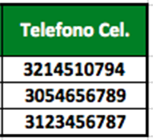 La VALIDACIÓN DE DATOS más lógica de la tabla de No. de Teléfono Celular se hizo por...