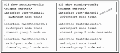 The SwA port has IEEE 802.1Q trunking enabled and the SwB port has ISL trunking enabled.