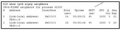 The neighbor with the link-local address FE80::5 is the first EIGRP neighbor that is learned by R1.