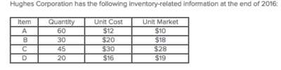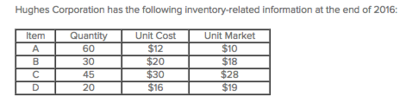 If Hughes Corporation applies the lower-of-cost-or-market rule to each individual item, what is the amount of inventory that Hughes will show on its books after the adjustment, if any?