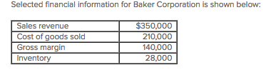 What is the average number of days to sell inventory (average days in inventory ratio) for Baker Corporation? (Round your answer to two decimal places)