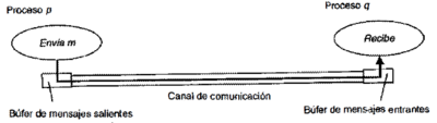 búfer de mensajes salientes de p al búfer de mensajes entrantes de q