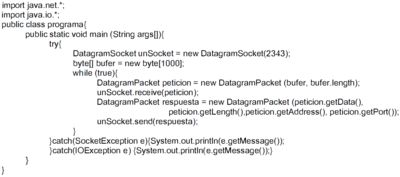 Un servidor UDP recibiendo peticiones y devolviéndolas al cliente de forma repetitiva.