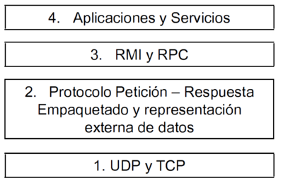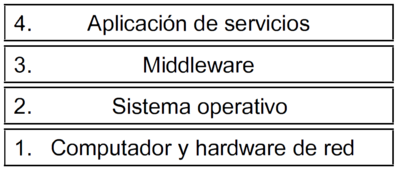 De las capas representadas en la figura siguiente y numeradas del 1 al 4. ¿Cuál o cuáles forman parte del llamado middleware?: