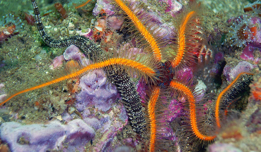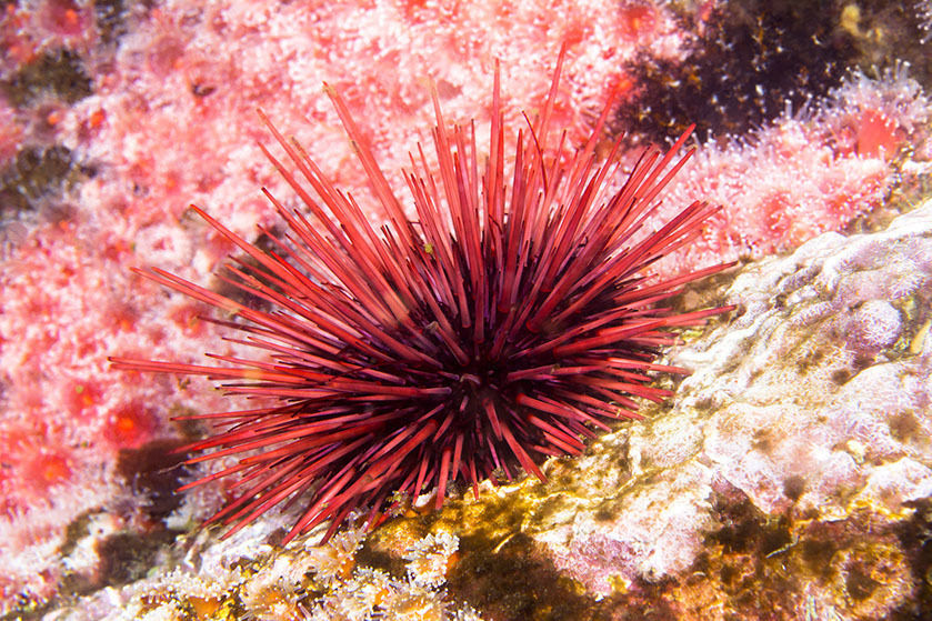 Los erizos de mar se desplazan lentamente por el fondo marino con la ayuda combinada de sus espinas y los pies ambulacrales.