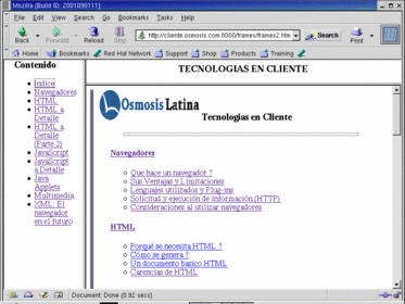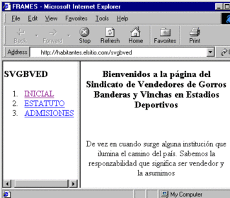 Qué son los frames Los frames (en inglés frame = cuadro, bastidor o marco) es un elemento implementado por Netscape, que permite dividir la pantalla en varias áreas independientes unas de otras, y por tanto con contenidos distintos, aunque puedan estar relacionados. No hay límites para el contenido de cada una de estas áreas: tienen las mismas propiedades que la pantalla completa normal, tal y como la conocemos. No hay que confundir los frames con las tablas. Su apariencia, a veces, puede ser similar, pero mientras el contenido de la celda de una tabla es fijo, en un área de pantalla creado por el elemento FRAME se dispone de todos los recursos del HTML. Es una zona viva.Las páginas que contienen una definición de FRAME no pueden contener el elemento BODY ni ninguno de los elementos que habitualmente aparecen en el BODY antes del elemento FRAMESET que es el que define la creación del FRAME. Si esto no se cumple, el FRAME será ignorado.Algunos visualizadores no soportan los frames. Para que nuestra página con frames no resulte opaca a ellos, se utilizará el elemento NOFRAMES que permite ofrecer un texto alternativo en entorno normal.Los frames permiten una flexibilidad de presentación extraordinaria, y para contenidos muy complejos, de difícil estructura por los medios convencionales del HTML, son casi insustituibles. De nuevo se presenta la duda de para qué visualizador es preferible programar nuestro WWW.