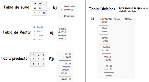 Operaciones matemáticas en base 2. En estas se utiliza las cifras (0,1)