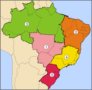 As regiões do [blank_start]Brasil[blank_end] são 5: A maior em tamanho é a Região [blank_start]Norte[blank_end], já a menor é a Região Sul. A Região Centro-Oeste abriga a capital do país [blank_start]Brasília[blank_end]. A Região com maior número de Estados é a Nordeste. E a mais rica do país é a Região Norte.