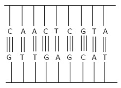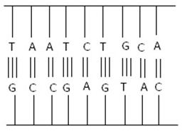 Sabe-se que o citado mapeamento é feito a partir do conhecimento da sequência de bases do DNA. O esquema abaixo que representa o pareamento típico de bases encontradas na molécula de DNA é: