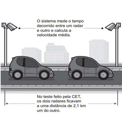 As medições de velocidade deixariam de ocorrer de maneira instantânea, ao se passar pelo radar, e seriam feitas a partir da velocidade média no trecho, considerando o tempo gasto no percurso entre um radar e outro. Sabe-se que a velocidade média é calculada como sendo a razão entre a distância percorrida e o tempo gasto para percorrê-la.