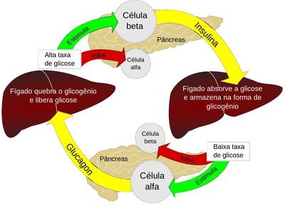 Quanto maior a quantidade de glicose no sangue menor a quantidade de glucagon que é liberado pelo fígado.