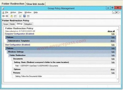 2 Configure o redirecionamento de pasta para o domínio dos empregados contas para o compartilhamento de rede .