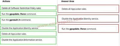 AppLocker. Quais três ações que você deve executar em seqüência? (Para responder, mover as ações