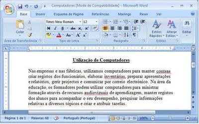 computadores. Depois de escrever o documento, verifica que algumas palavras têm