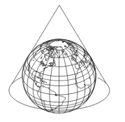 A ONU faz referência a uma projeção cartográfica em seu logotipo. A figura que ilustra o modelo dessa projeção é:
