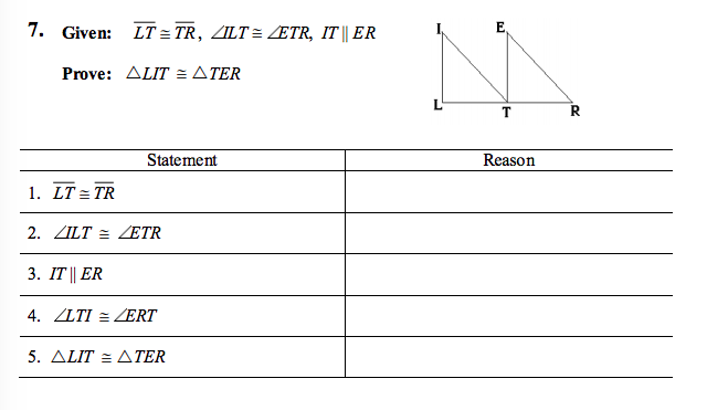 Fill in the missing reasons