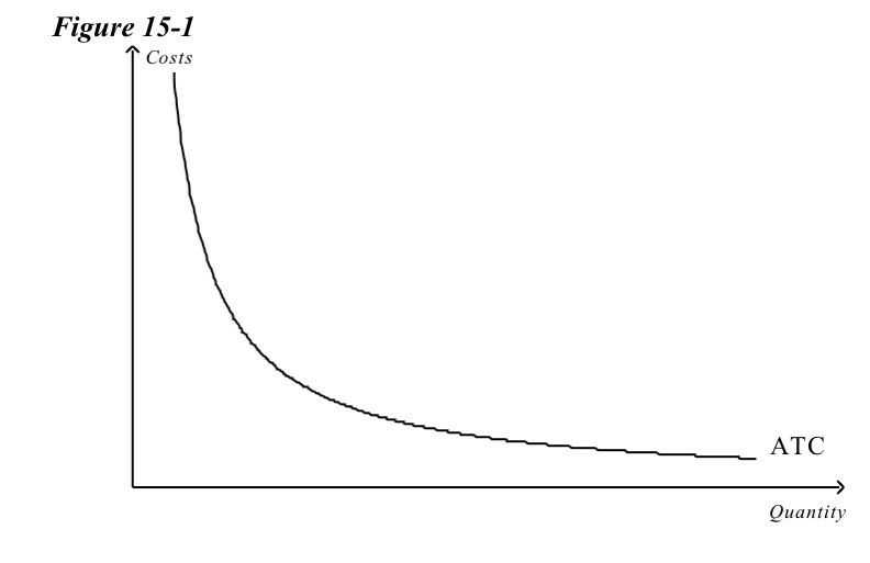 Refer to Figure 15-1. The shape of the average total cost curve reveals information about the nature of the barrier to entry that might exist in a monopoly market. Which of the following monopoly types best coincides with the figure?