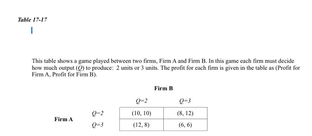 Refer to Table 17-17. Which of the following outcomes represent the Nash equilibrium in this game?