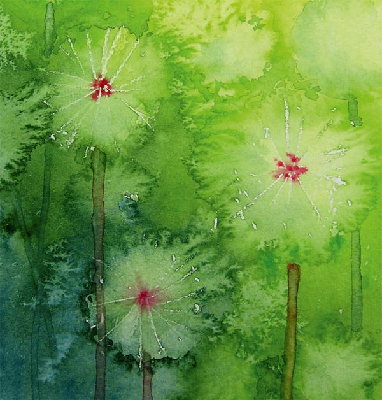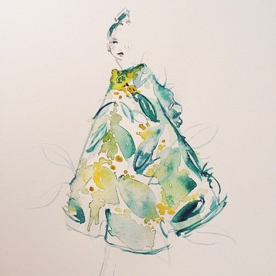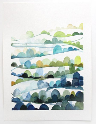 This painting by Katie Rodgers (aka @paperfashion on Twitter) uses the colors Blue-Green, Green, and Yellow-Green, which are: