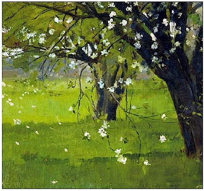Select the 2 dominant color schemes in this painting: