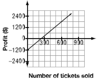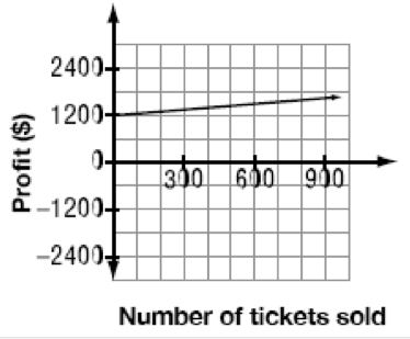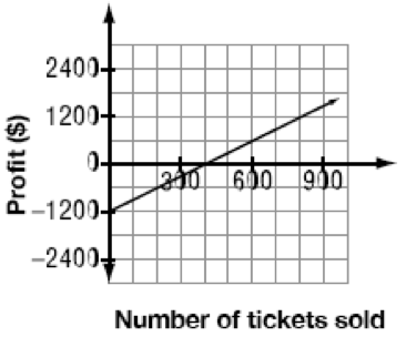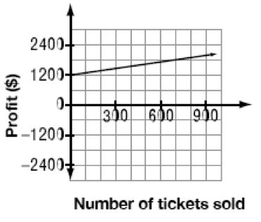 A student council is selling tickets to a video dance for $5 each. The cost of the disc jockey and the equipment is $1200. Which of the following graphs represents the relationship between the profit in dollars made by the student council and the number of tickets sold?