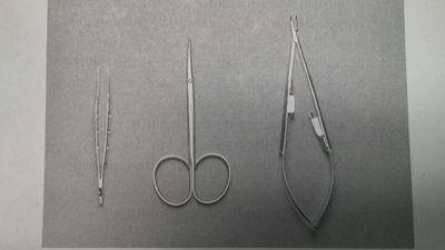 In this photograph, the surgical instruments are correctly identified from left to right as