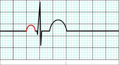 The first impulse that is recorded on the graph paper and represents atrial depolarization