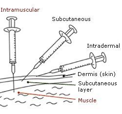 When administering an intradermal injection in the volar forearm, the MA knows to aspirate and check for blood in the hub of the needle before administering the medication