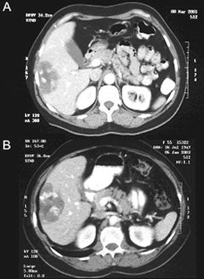 Una tomografía computarizada abdominal para descartar un carcinoma hepatocelular.