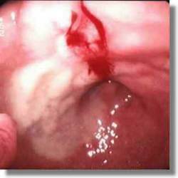 La descripción y localización de la úlcera sugieren una lesión de Dieulafoy.