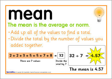 What is the "Mean" of 10+10+5+5+10? Use your picture for reference.