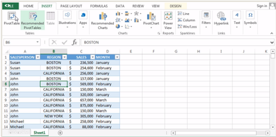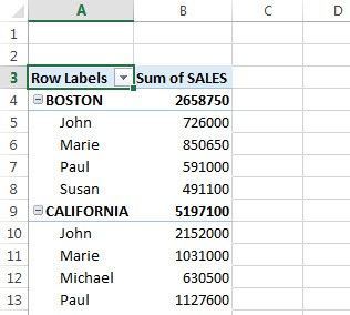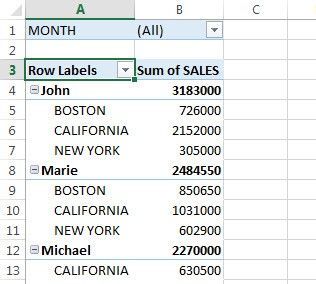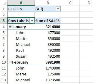 If I fill out the PivotTable Field list as below to create a pivot table, what will be the result? SalesPerson then Region to Row Field, Sales to Value Field, Month to Report Filter (Accept Default Options)