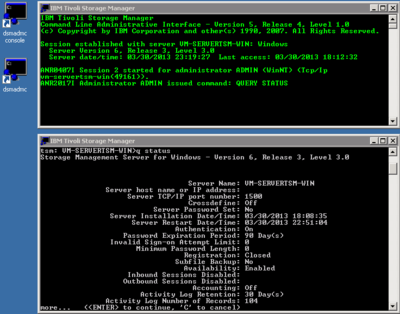 TSM Administrator will issue #[blank_start]dsmadmc[blank_end] command and #[blank_start]dsmadmc[blank_end] -console to performed administrative activities on TSM operation