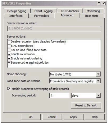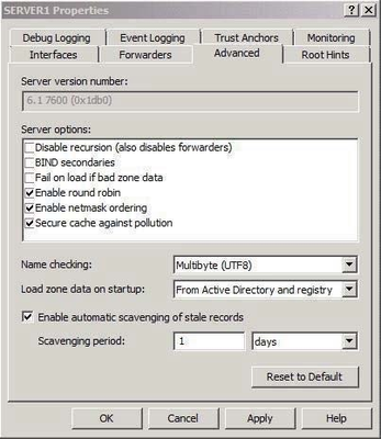 • Modify the Server Aging/Scavenging properties