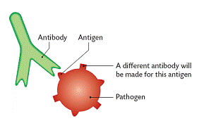 Pathogens have proteins, called [blank_start]antigens[blank_end], in their cell membranes that our immune systems recognise as [blank_start]foreign[blank_end]. [blank_start]Specific[blank_end] antibodies are made for each antigen by the white blood cells. Antibodies attach to the antigens on the surface of the [blank_start]microorganisms[blank_end]. This inactivates the microbes and makes them [blank_start]clump[blank_end] together, allowing them to be easily engulfed by other white blood cells.