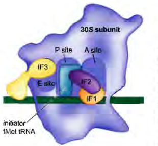 start codon and initiator tRNA in the P site is now ready to accept charged tRNAs