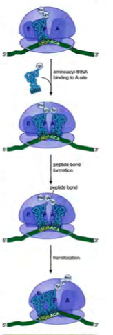 coordinates correct recognition of mRNA by each tRNA and catalyzes peptide bond formation between growing peptide chain and amino acids attached to tRNA