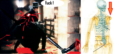 Suite à un combat d'escrime ayant mal tourné, Zorro se fait littéralement sectionner le bras au complet. Il ne lui reste que la tête humérale avec ses deux tubercules (majeur et mineur) ainsi que quelques cm sans plus.
