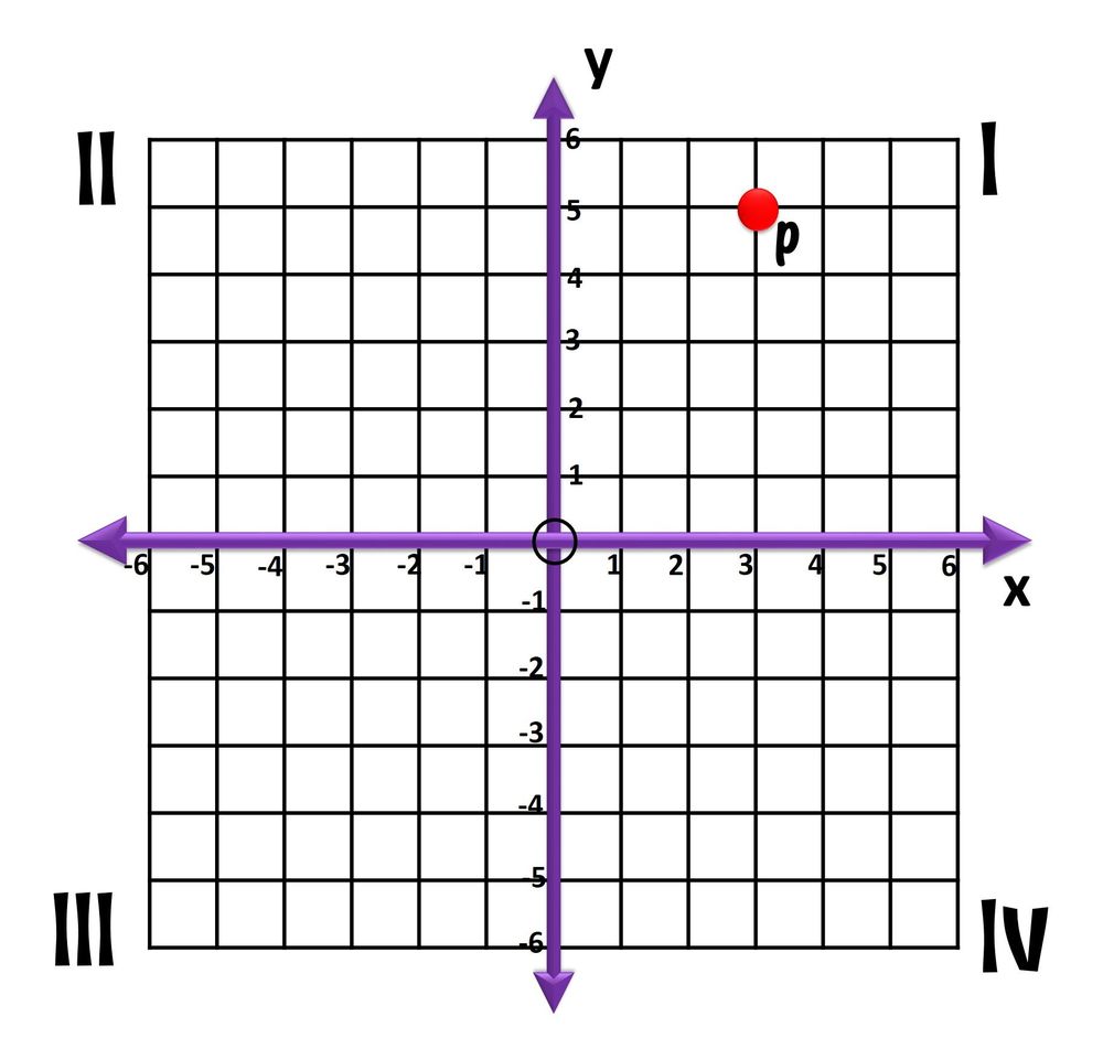 There are 3 points plotted on this graph aside from point p. Based on the location of these points determine what reflection has happened in relation to point P.