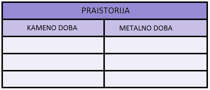 Poredaj praistorijske periode hronološkim redom brojevima 1-6 počevši od najstarijeg, koga ćeš označiti sa 1.