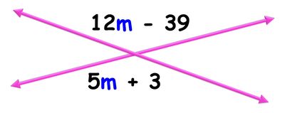 Here Johnny is given two vertical angles and is asked to find the value of m. After carefully solving for m he realized the value of this variable is [blank_start]6[blank_end].