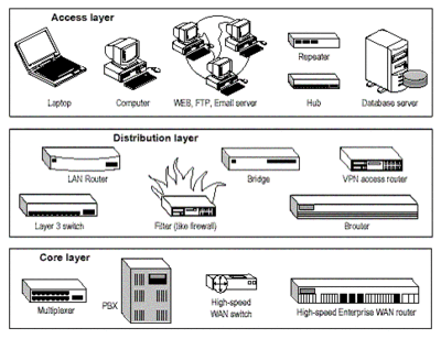 This layer is considered the backbone of the network and includes the high-end switches and high-speed media such as fiber cables.